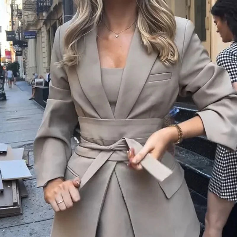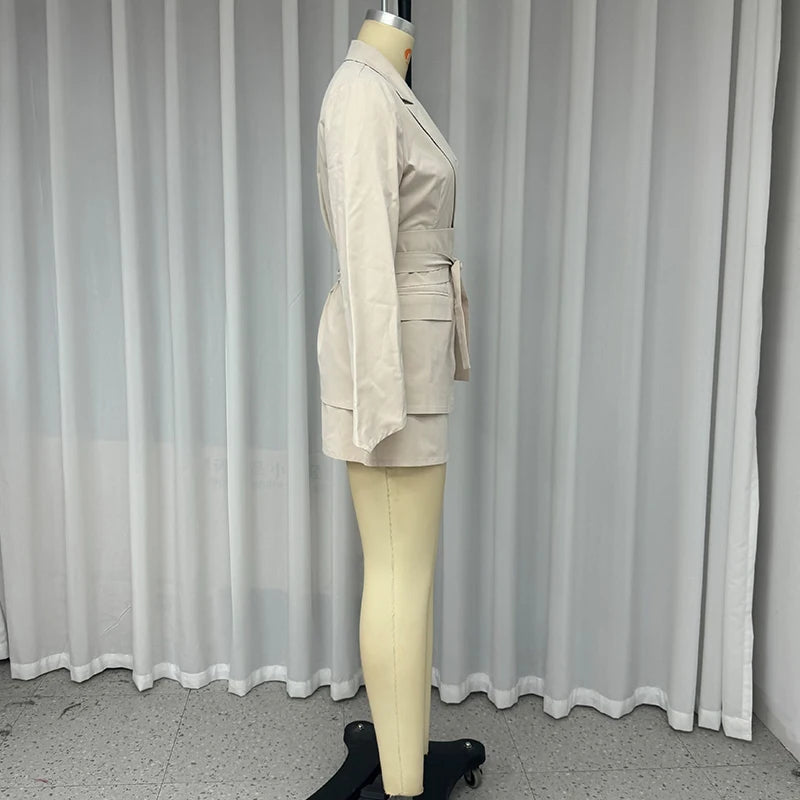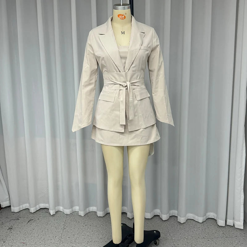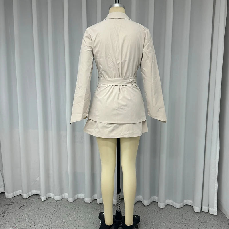 The Ellen Set is more than an outfit: it’s an extension of your confidence, combining high-street sophistication with the freedom of movement you want every day. Featuring a turn-down collar blouse with full sleeves, an above-the-knee A-line skirt, and strategically placed sashes and pockets, it blends femininity with subtle power in every detail.
